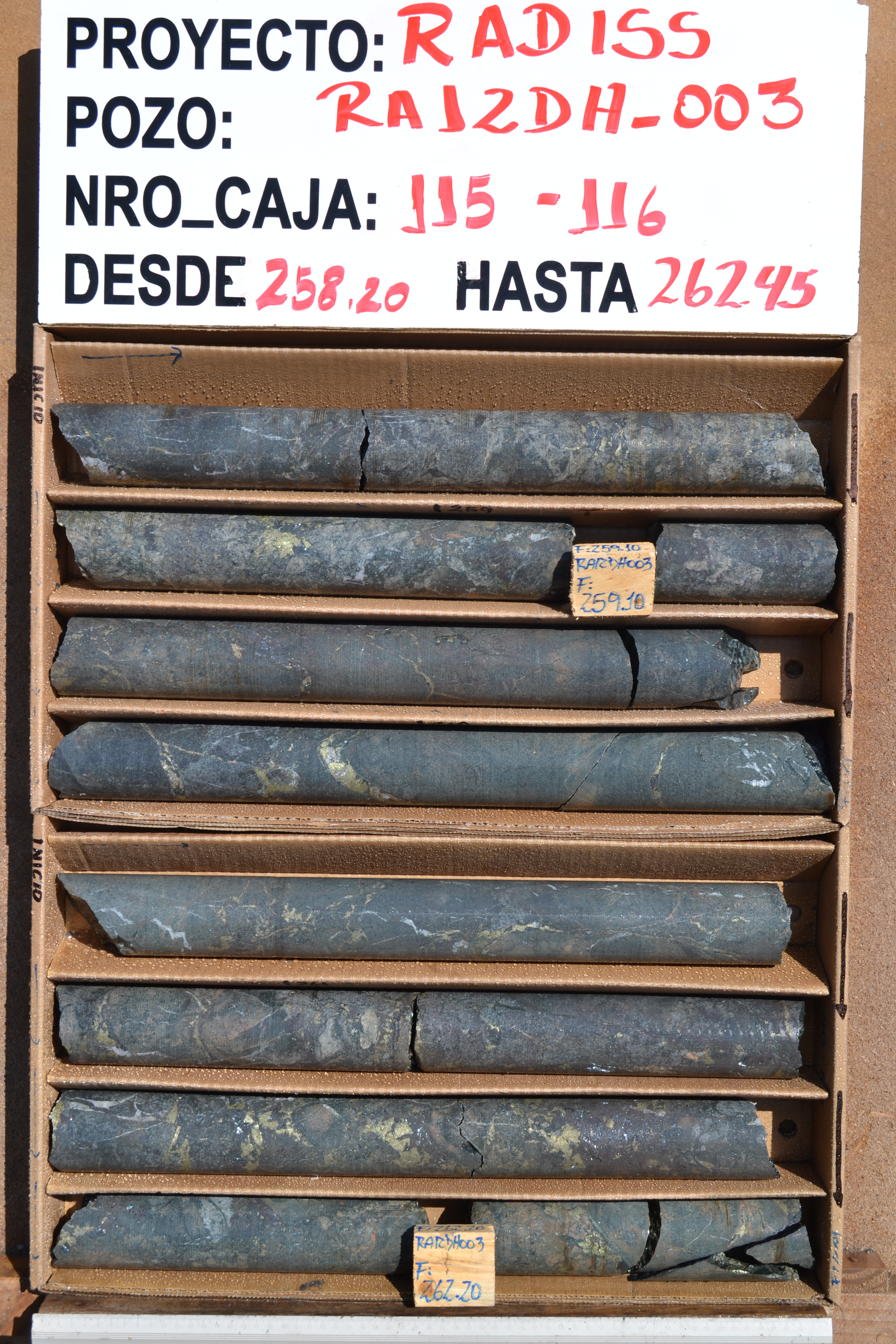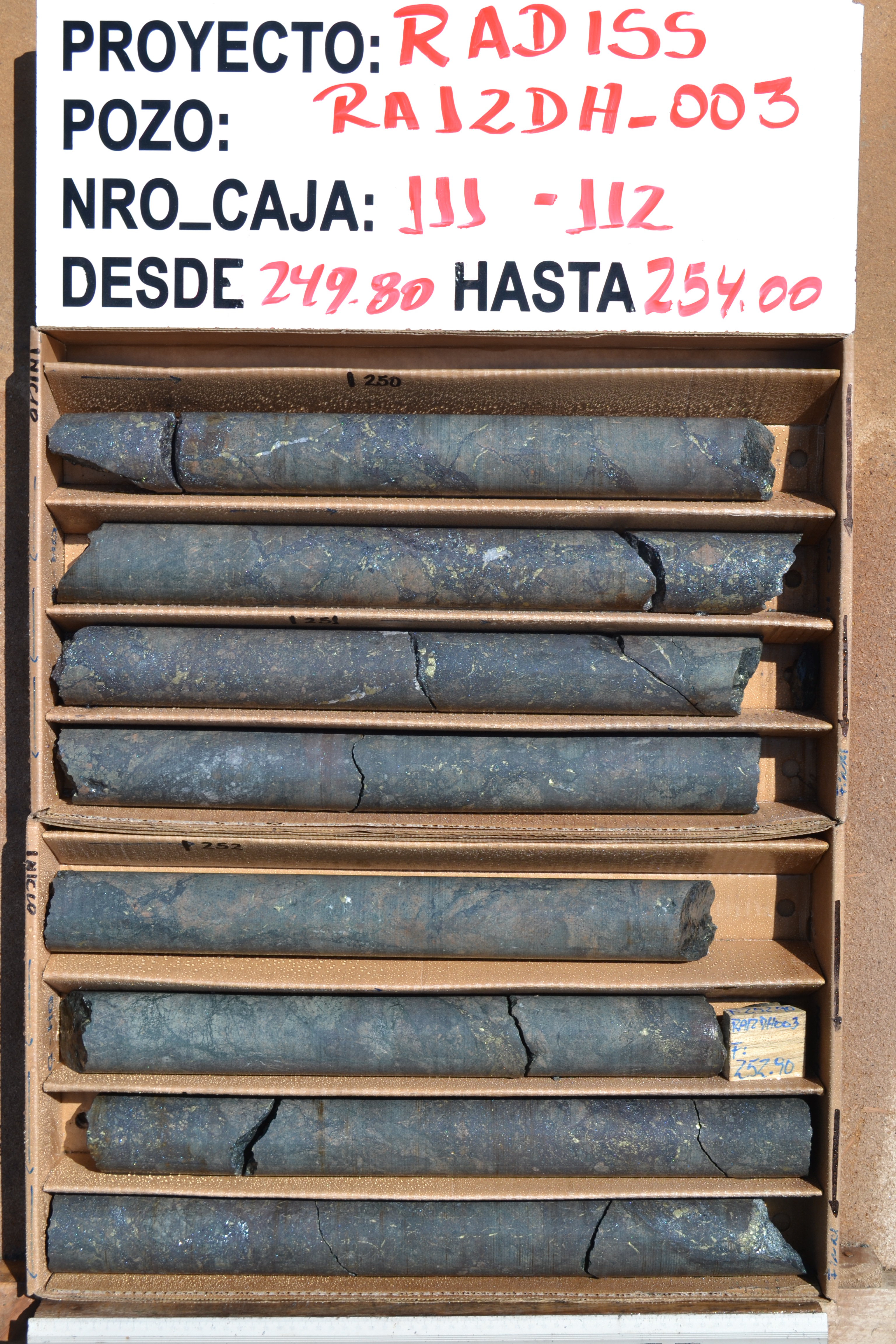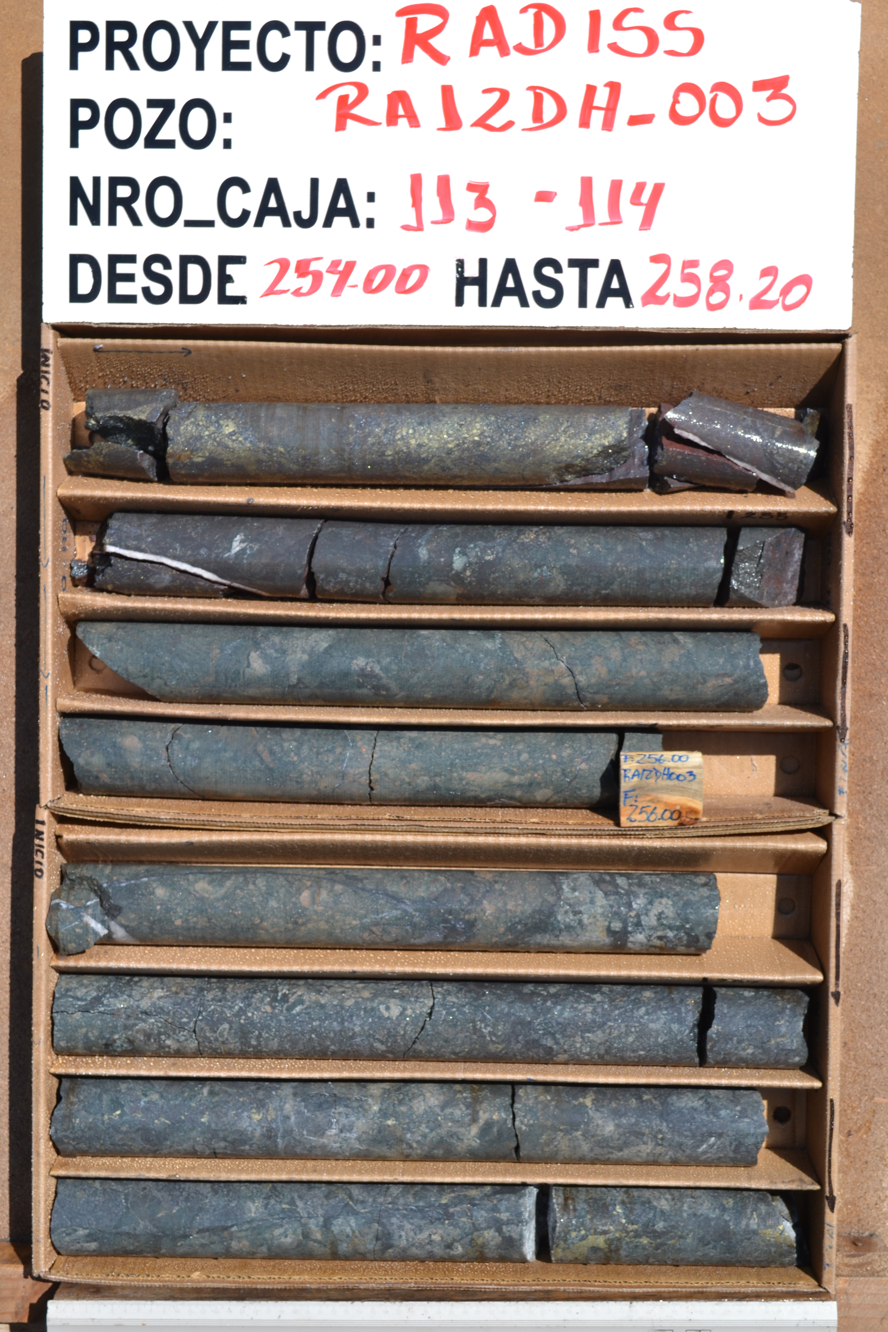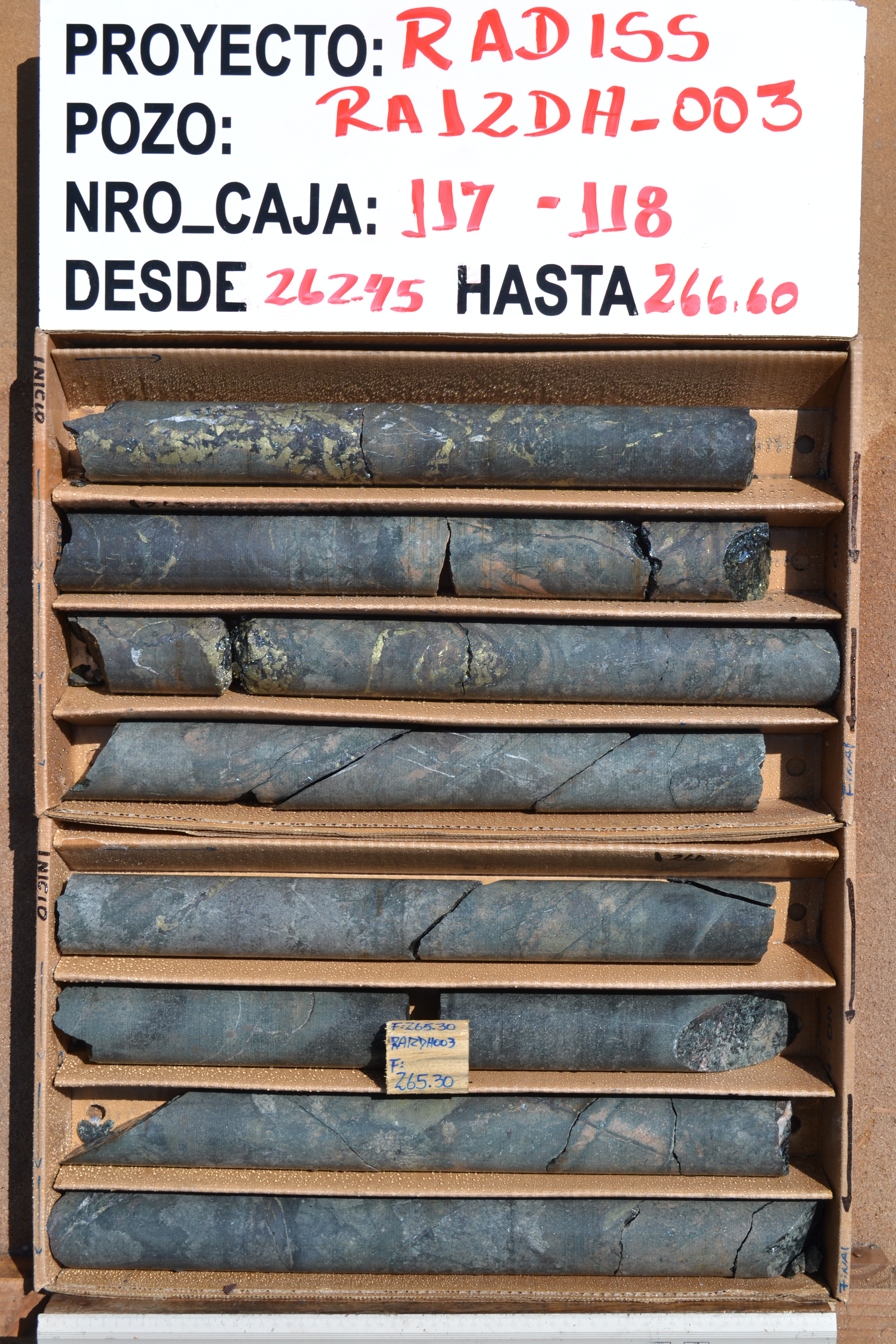 Rincones RA12DH-003 236 - 264m: 1.14% Cu, 335ppm Co and 0.12g/t Au (HISTORIC)