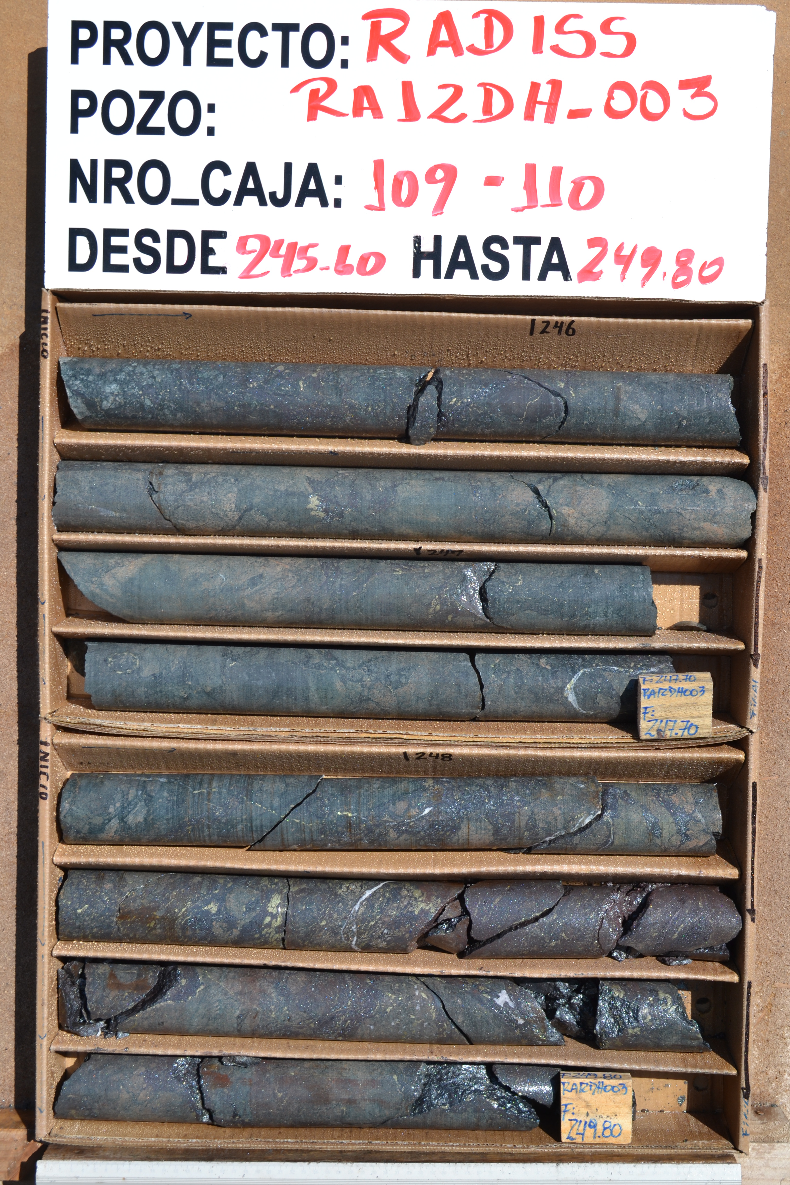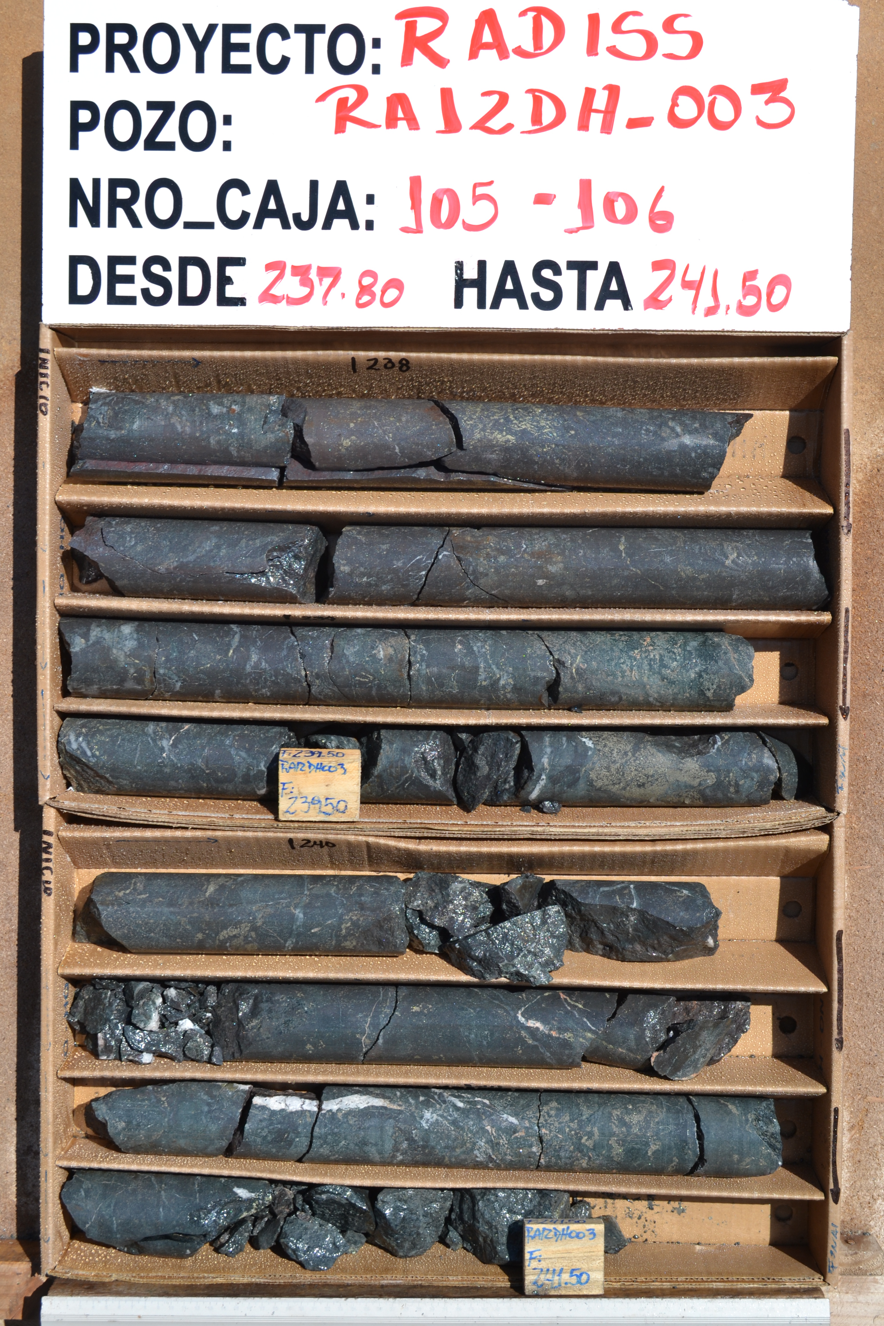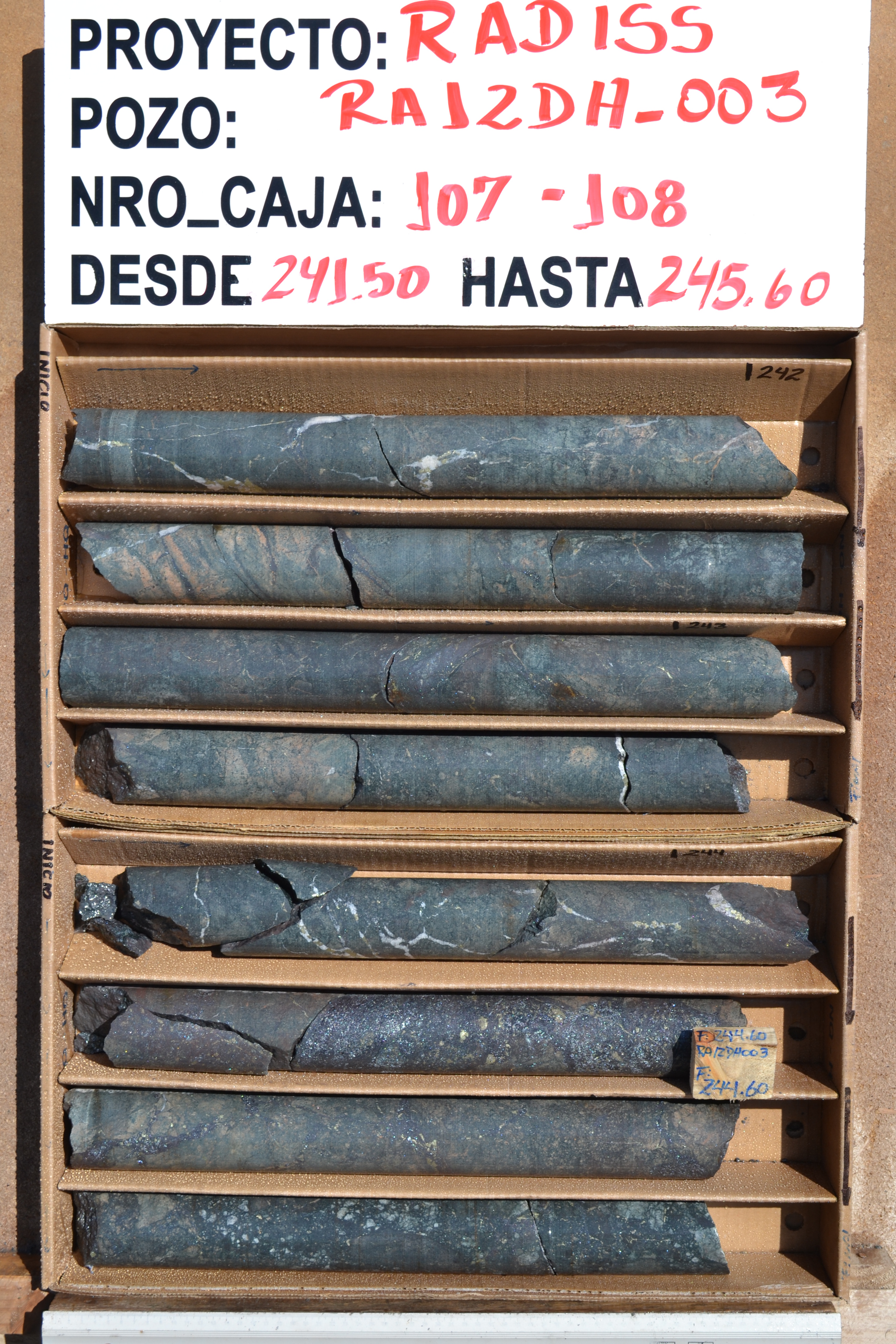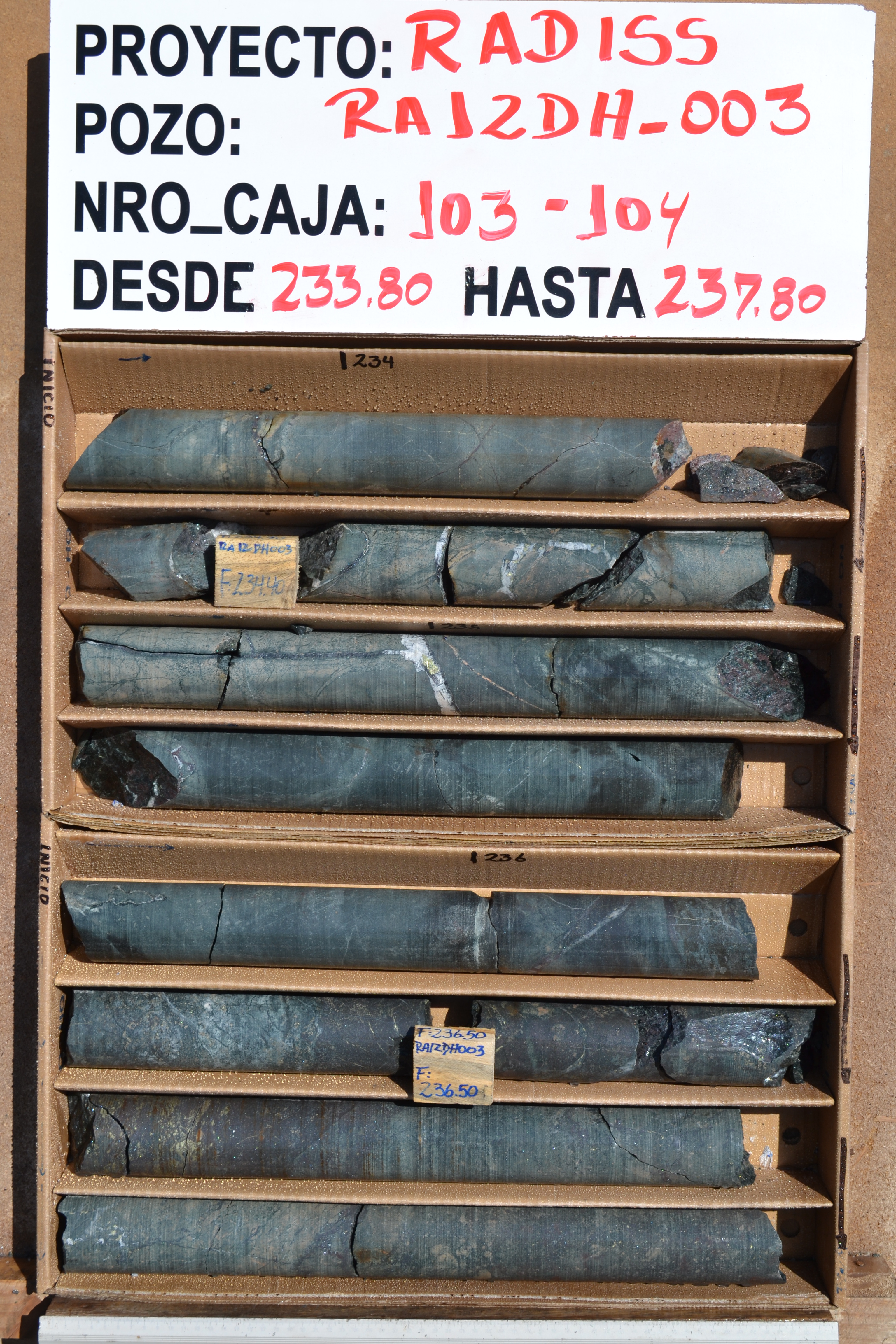 Rincones RA12DH-003 236 - 264m: 1.14% Cu, 335ppm Co and 0.12g/t Au (HISTORIC)