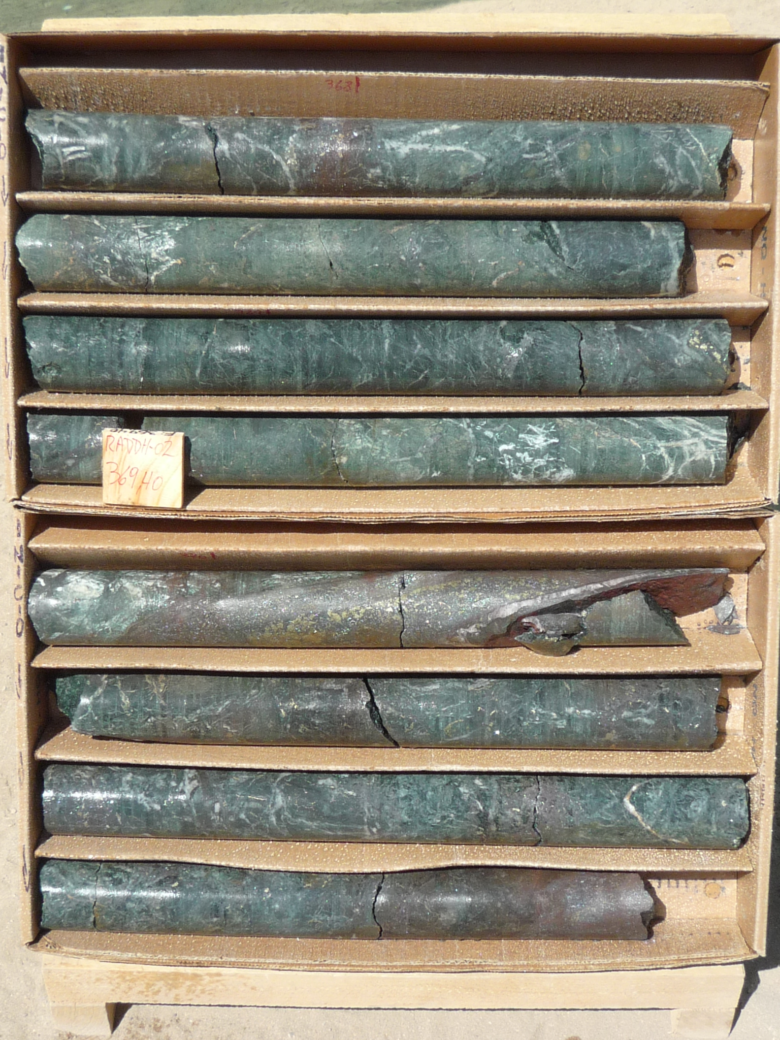 Rincones RADDH-02 370-404m 1.20% Cu, 579ppm Co and 0.21g/t Au (HISTORIC)