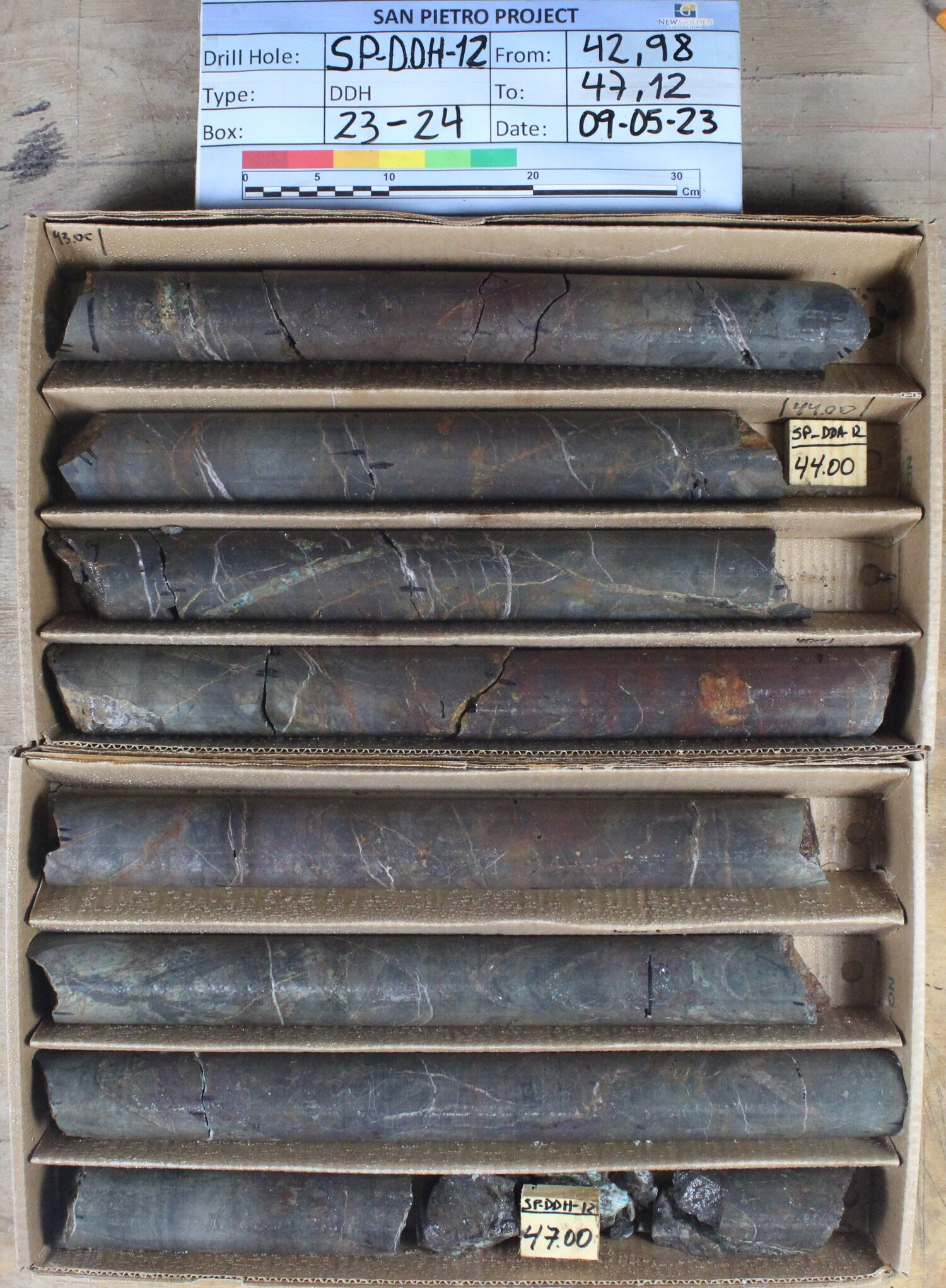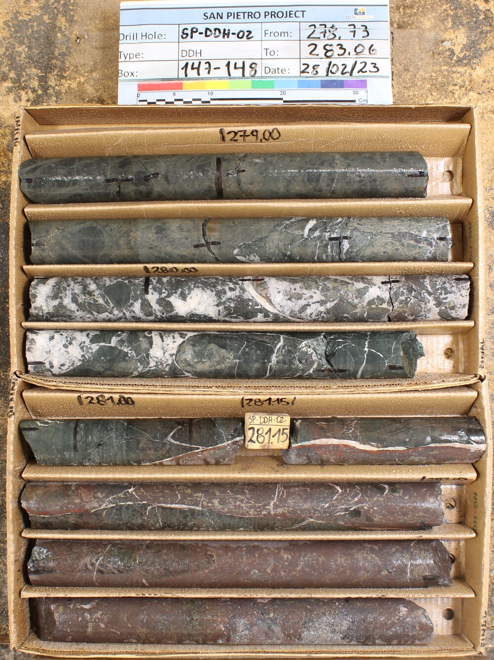 COLLA SP-DDH-02 280-291M (11M) 0.98% CU, 896 g/t CO AND 30.9% FE